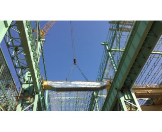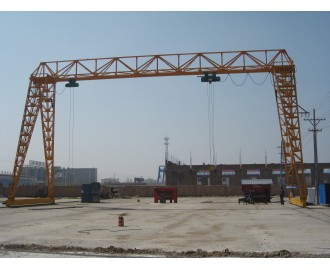 橋式起重機(jī)是橫架于車(chē)間、倉(cāng)庫(kù)和料場(chǎng)上空進(jìn)行物料吊運(yùn)的起重設(shè)備。由于它的兩端坐落在高大的水泥柱或者金屬支架上,形狀似橋。橋式起重機(jī)的橋架沿鋪設(shè)在兩側(cè)高架上的軌道縱向運(yùn)行,可以充分利用橋架下面的空間吊運(yùn)物料,不受地面設(shè)備的阻礙。它是使用范圍廣、數(shù)量多的一種起重機(jī)械