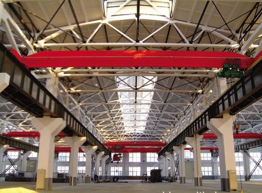橋式起重機(jī)是橫架于車間、倉庫和料場(chǎng)上空進(jìn)行物料吊運(yùn)的起重設(shè)備。由于它的兩端坐落在高大的水泥柱或者金屬支架上,形狀似橋。橋式起重機(jī)的橋架沿鋪設(shè)在兩側(cè)高架上的軌道縱向運(yùn)行,可以充分利用橋架下面的空間吊運(yùn)物料,不受地面設(shè)備的阻礙。它是使用范圍最廣、數(shù)量最多的一種起重機(jī)械。